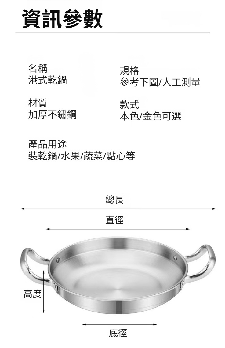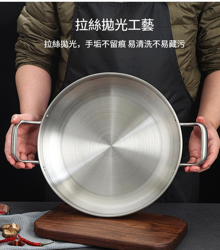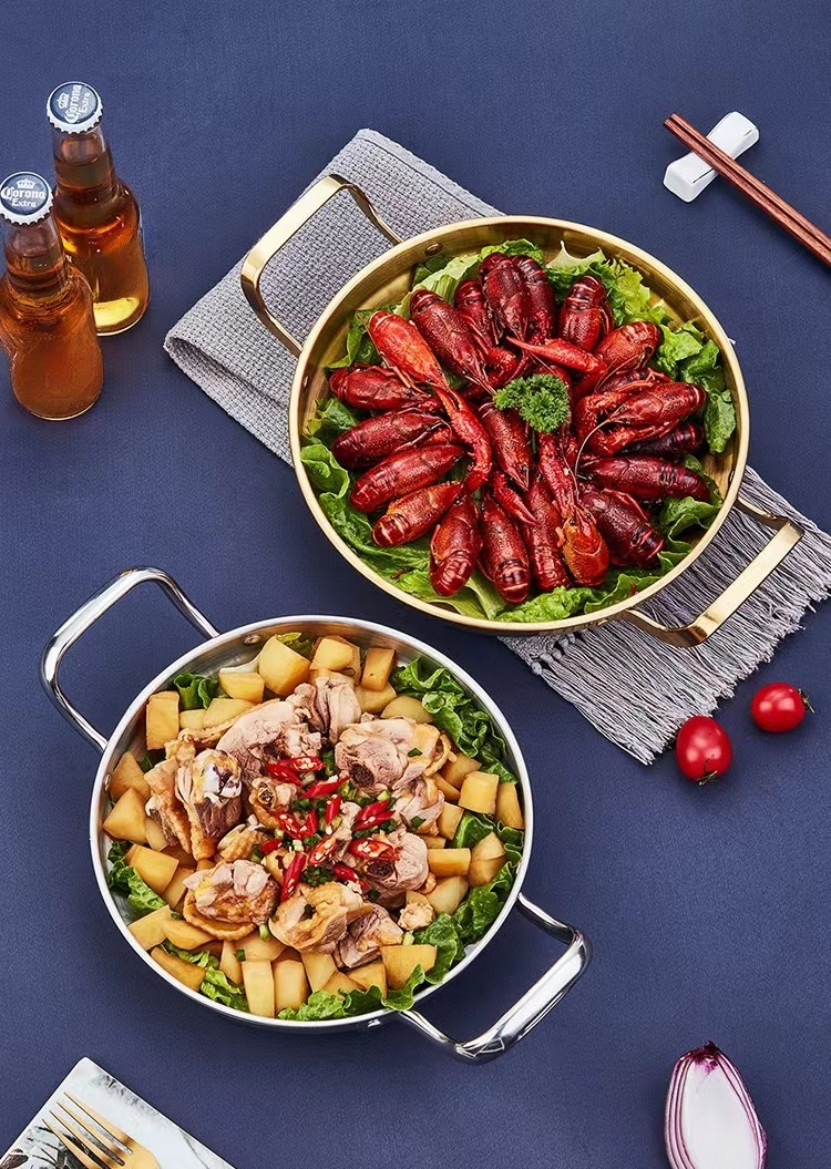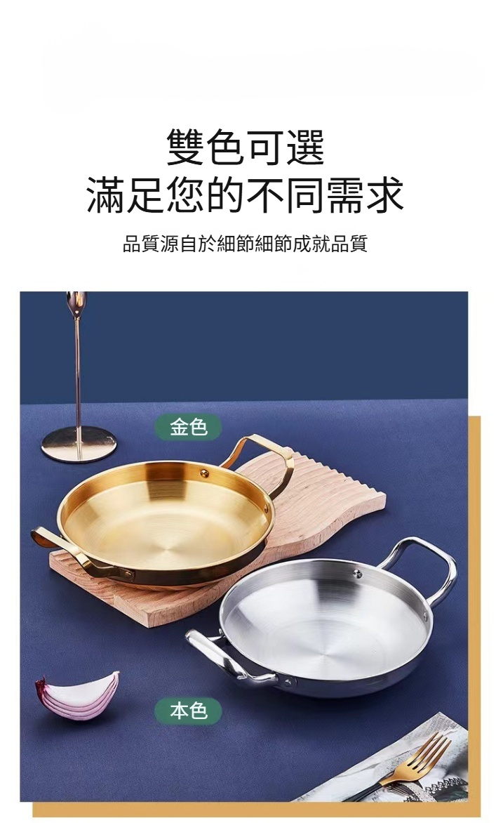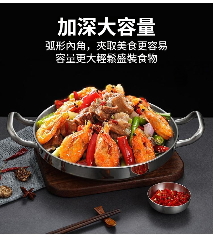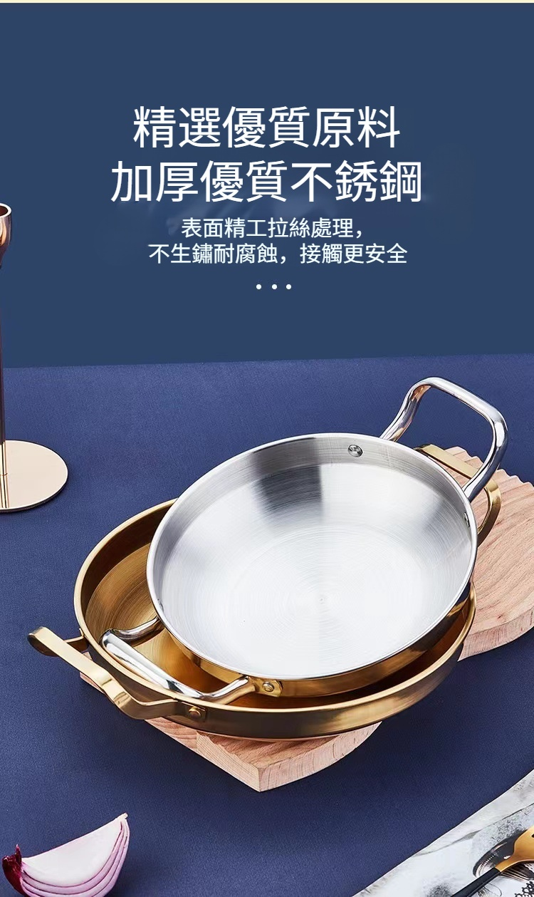 不鏽鋼乾鍋海鮮鍋部隊火鍋金色平底淺鍋菜盤子雙耳小炒鍋
